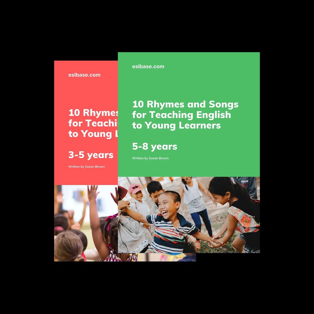 20 rhymes and songs for Young Learners: 10 rhymes for 3-5 year olds + 10 rhymes for 5-8 year olds. Or buy with our "20 Lesson Plans Pack" and save.